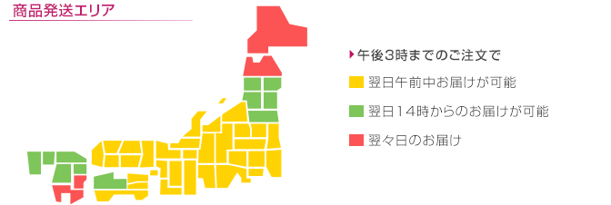 緑色の地域でも、山間部、郡部などは、18時以降のお届けになる場合がございます。